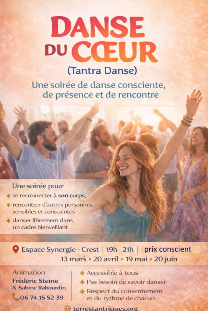 La Tantra Danse est un voyage qui commence à l’intérieur de soi : sentir l’harmonisation et la fluidité dans le corps, avec des musiques rythmées, profondes et parfois extatiques.